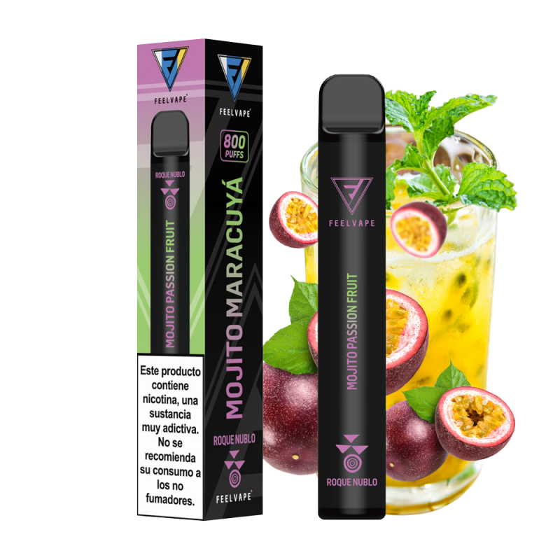 Si buscas una experiencia de vapeo única, llena de frescura y sabor, FeelVape Pro 800 – Mojito de Maracuyá será tu mejor elección. ¡Saborea el Caribe en cada calada!